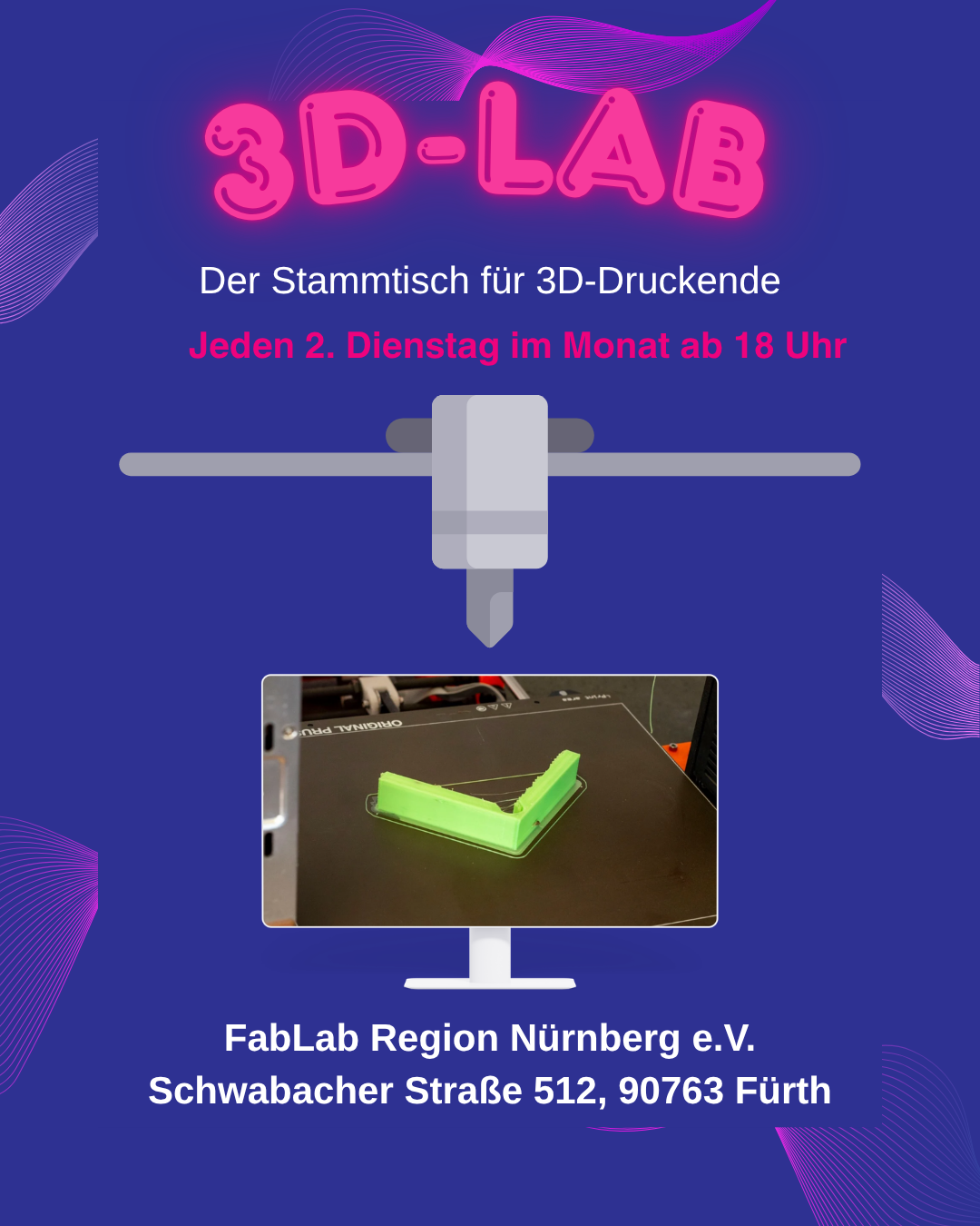 Jeden zweiten Dienstag im Monat ab 18 Uhr im FabLab.Kommt gerne mit euren Anliegen rund um den 3D-Druck vorbei, tauscht euch aus und probiert gerne Neues aus.